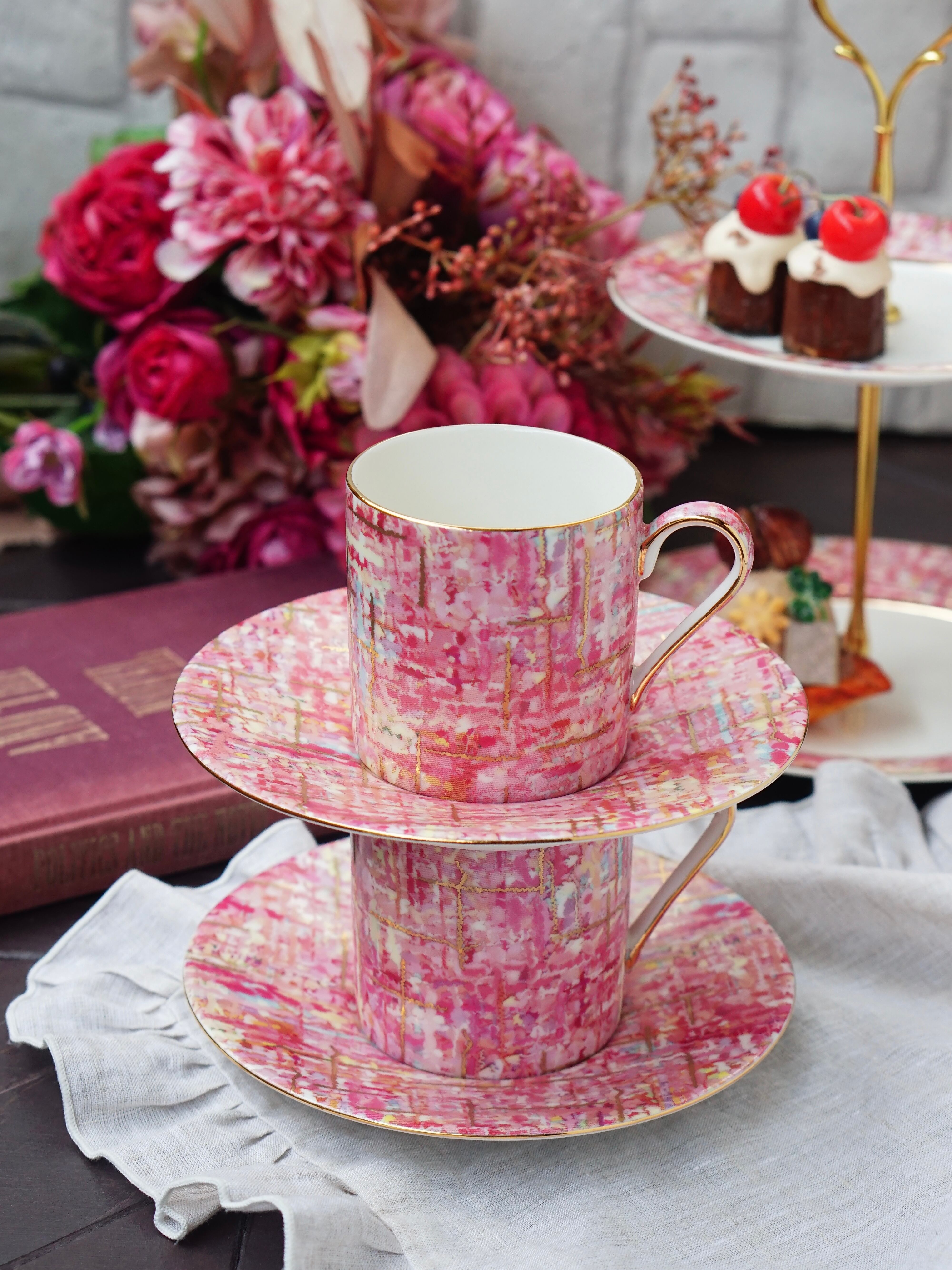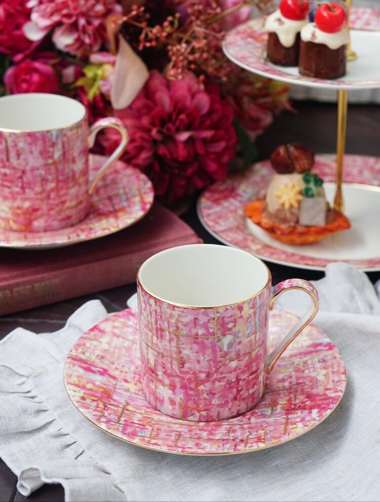 おしゃれなツィード柄が施されたティーカップ&ソーサー。